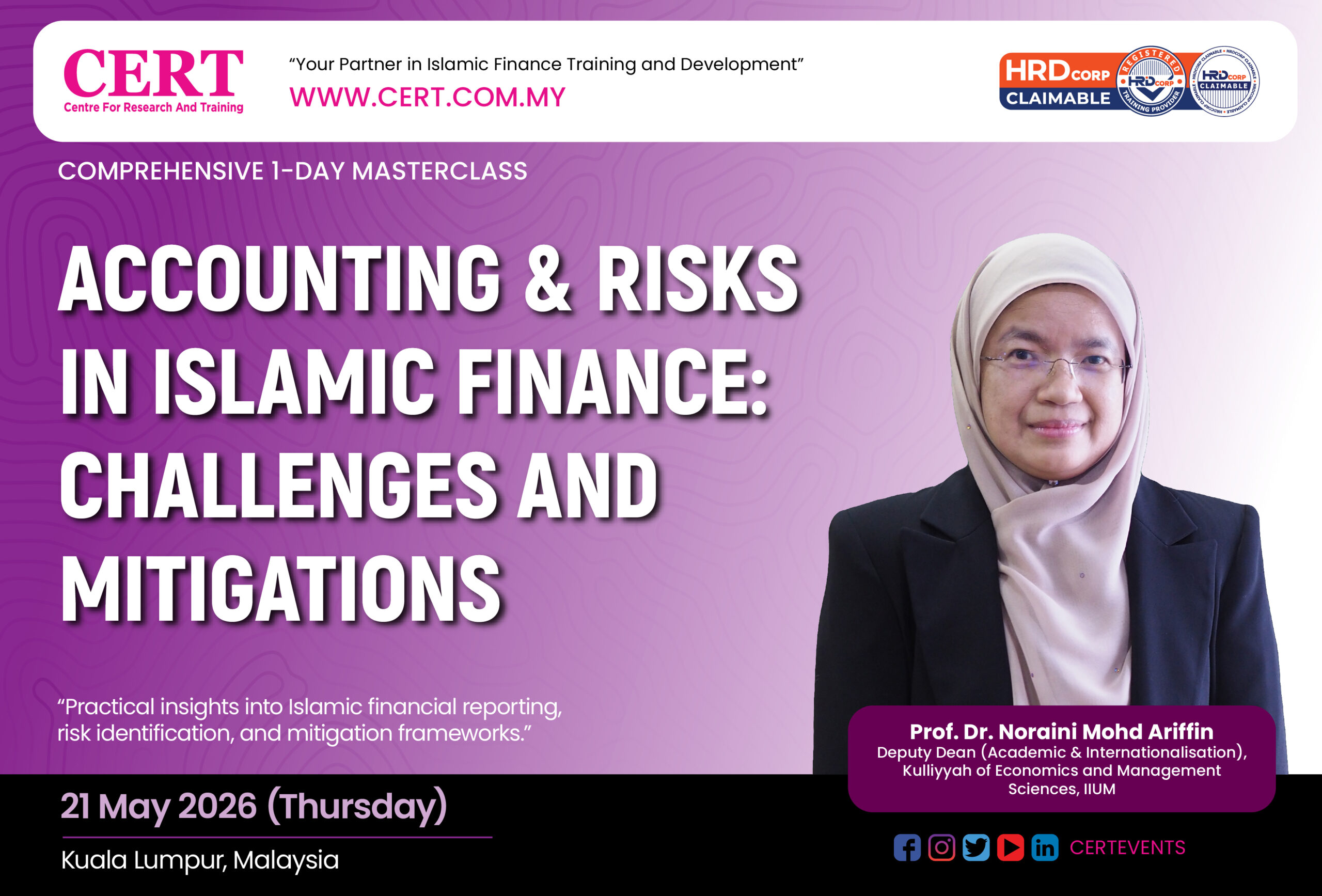 • Speaker: Prof. Dr. Noraini Mohd Ariffin, Professor of Accounting at the International Islamic University Malaysia (IIUM).