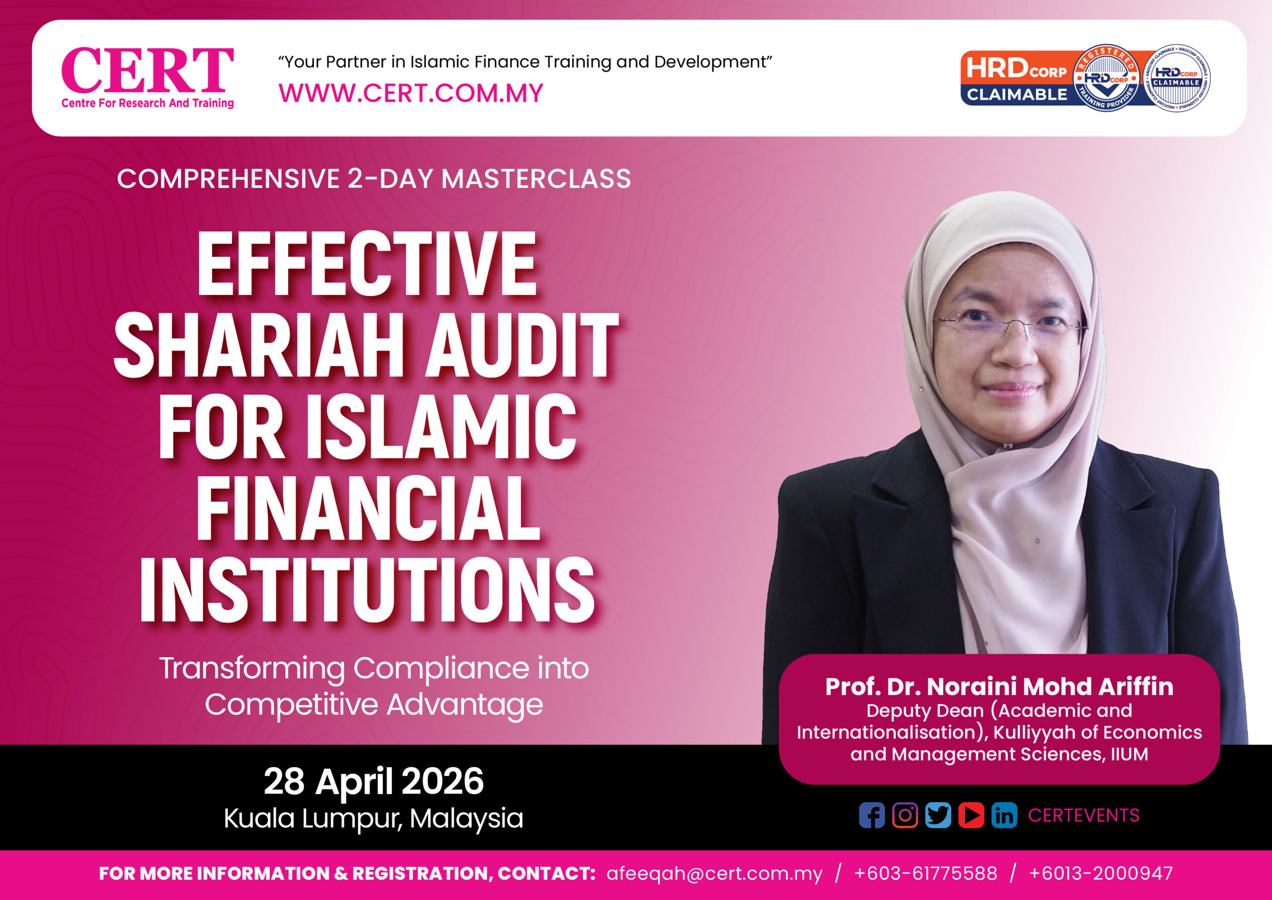 This Comprehensive 1-Day Masterclass is titled “Effective Shariah Audit for Islamic Financial Institutions: Transforming Compliance into Competitive Advantage.”